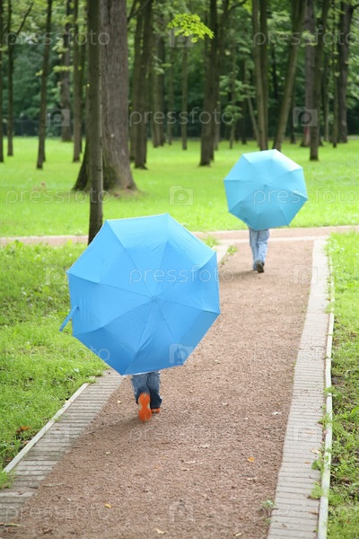 Два ребенка под зонтиками в парке