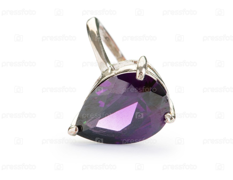 Серебряное кольцо с фиолетовым камнем на белом фоне