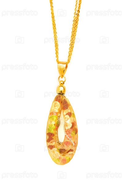 Золотая цепочка с кулоном на белом фоне