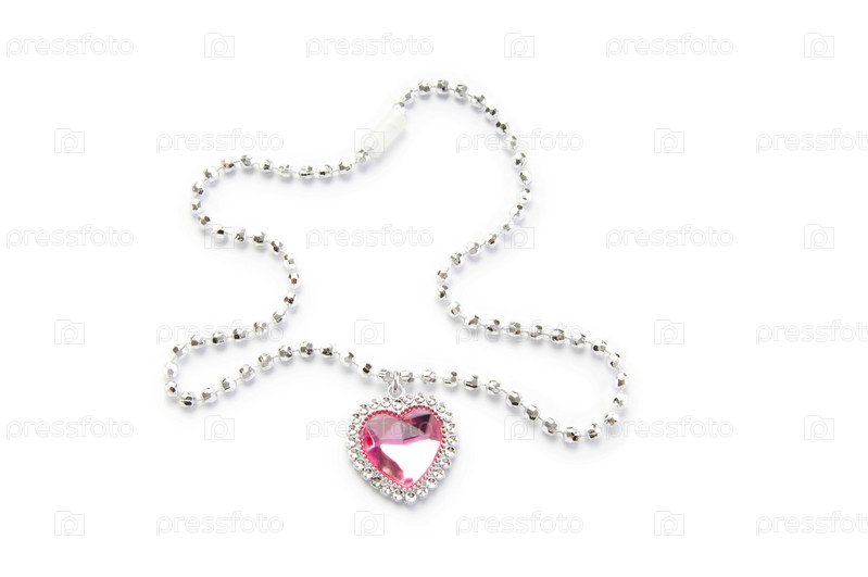 Серебряная цепочка с кулоном на белом фоне