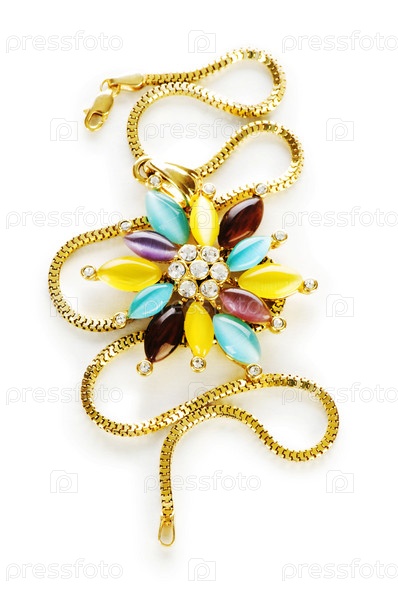 Золотой кулон и цепочка на белом фоне