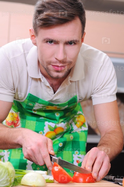 Мужчина в кухне готовит ужин