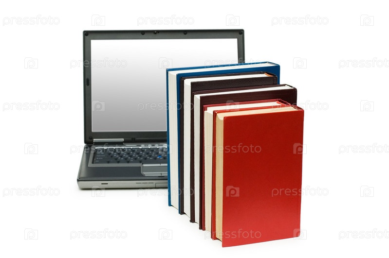 Книги и ноутбук на белом фоне