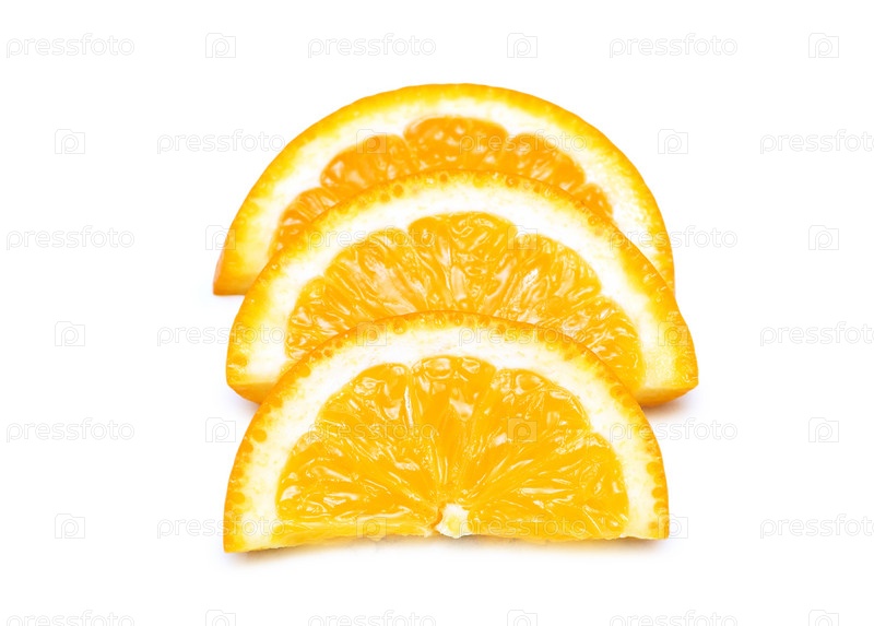 Три ломтика апельсина на белом фоне