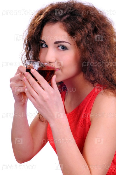 Женщина с кофе, изолированная на белом фоне