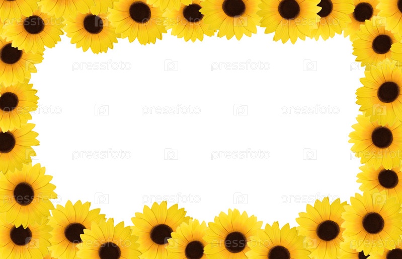 Рамка из подсолнухов на белом фоне