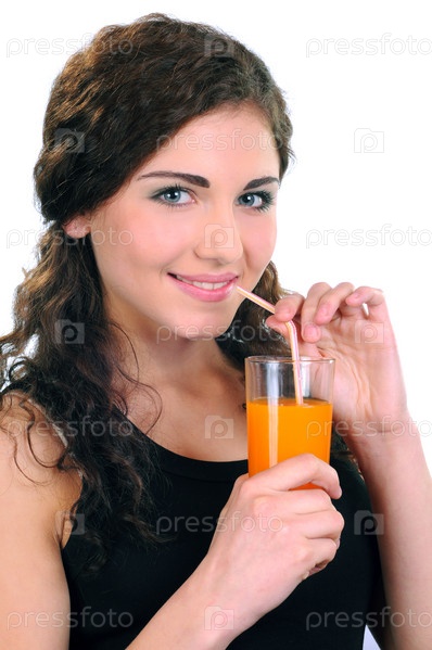 Девушка пьет сок