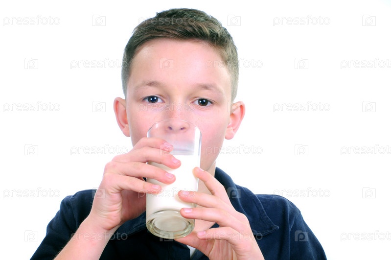 Мальчик пьет молоко