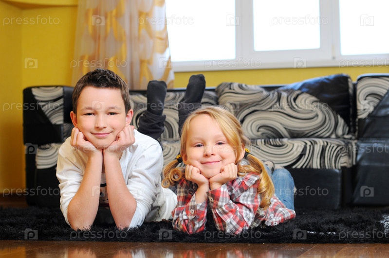 Брат и сестра лежат на полу