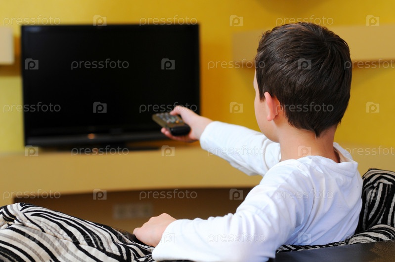 Маленький мальчик смотрит телевизор