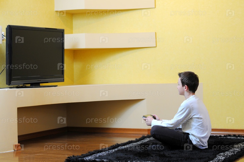 Мальчик играет с игровой консолью