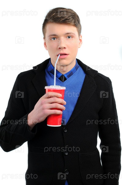 Изолированный мужчина с колой