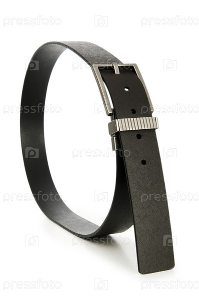 Черный кожаный ремень на белом фоне