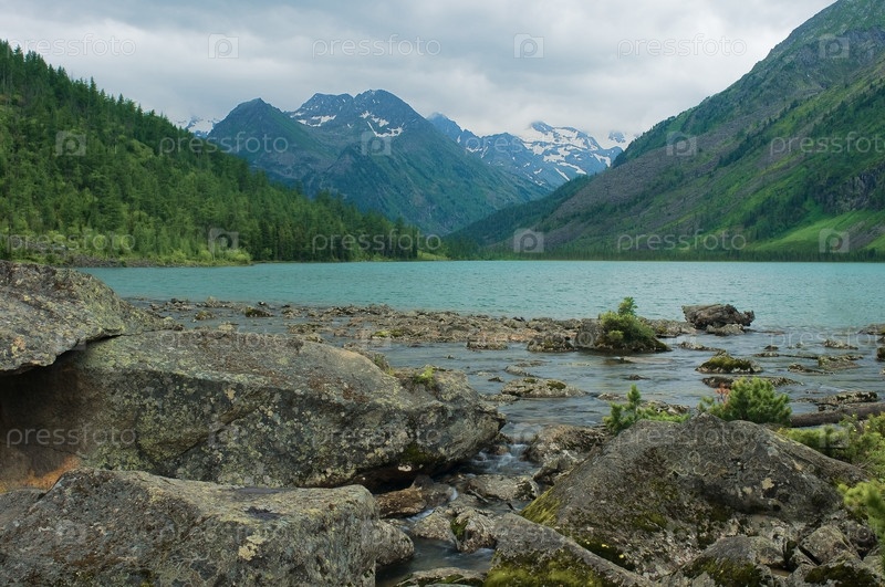 Озеро на фоне горных вершин