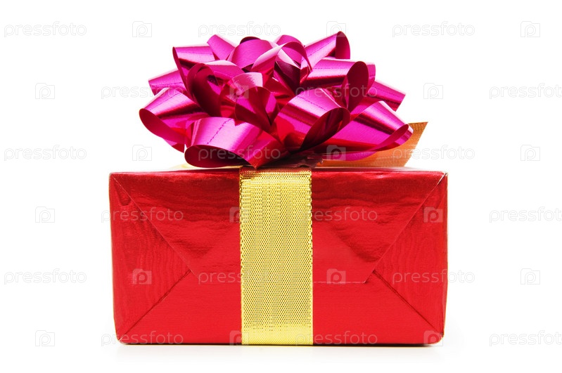 Красная коробка с подарком на белом фоне