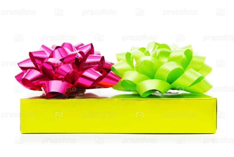 Коробка с двумя бантами на белом фоне