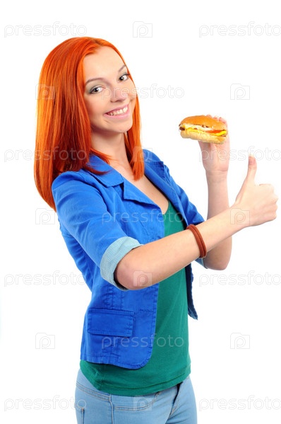 Женщина ест гамбургер