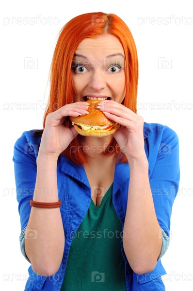 Женщина ест гамбургер