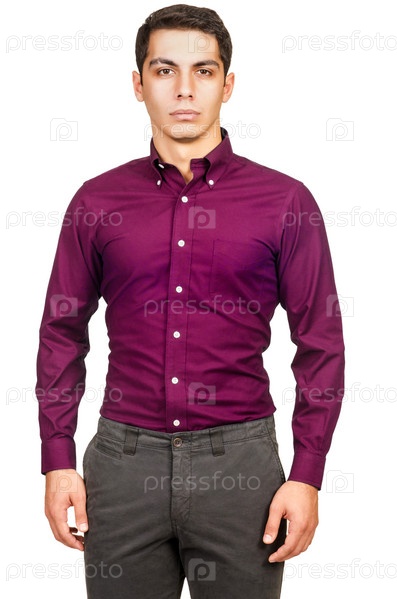 Мужчина-модель в рубашке, изолированный на белом