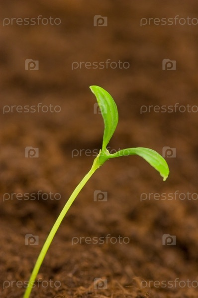 Саженец крупным планом на фоне земли