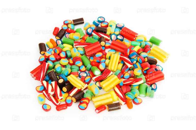 Горсть конфет на белом фоне