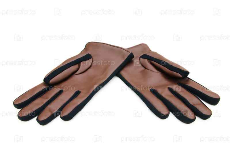 Кожаные коричневые перчатки на белом фоне