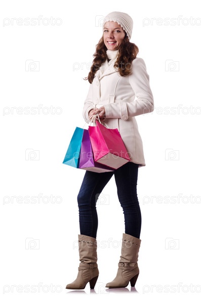Женщина в зимней одежде делает рождественские покупки