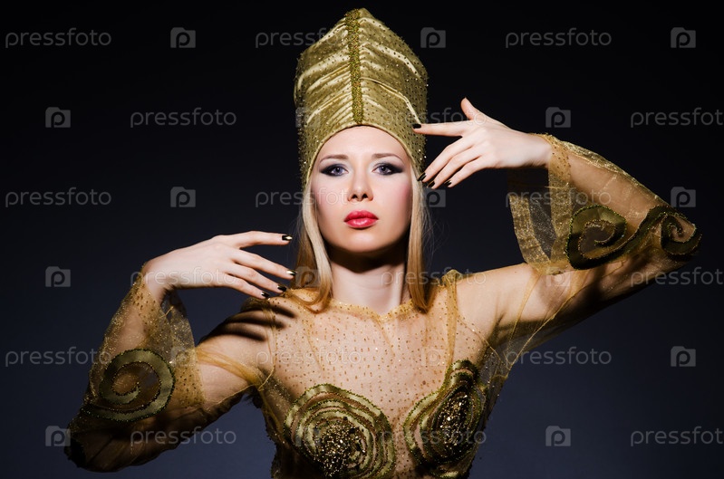 Молодая модель в египетском костюме