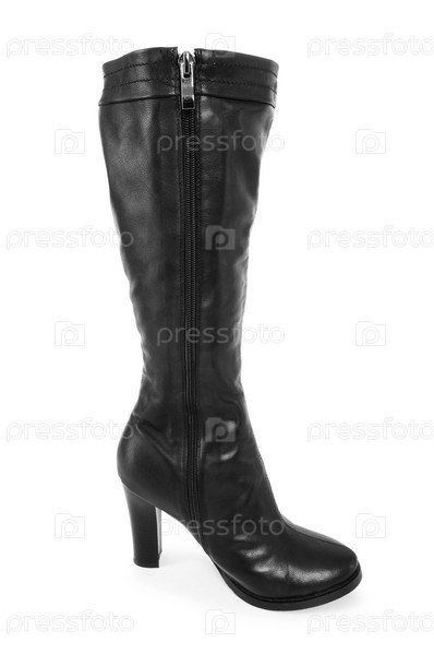Высокий женский сапог на белом фоне