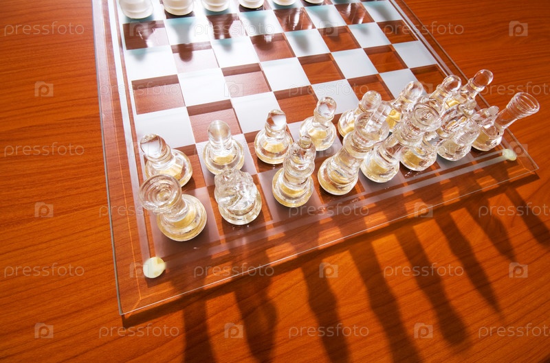 Стеклянные шахматные фигуры и доска