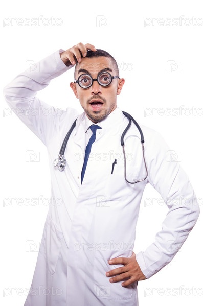 Забавный врач, изолированный на белом фоне