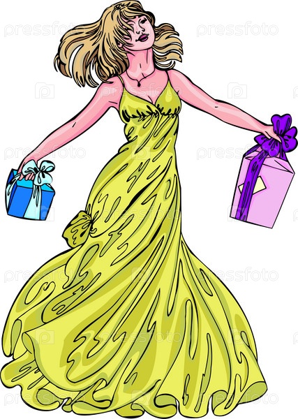 Девочка и подарки, вектор