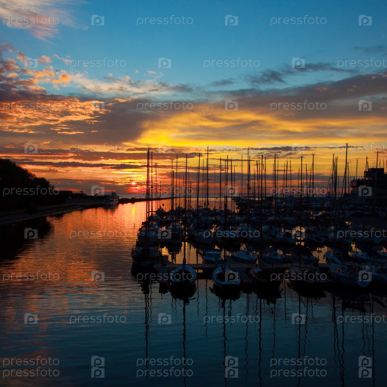 Яхты в порту на закате