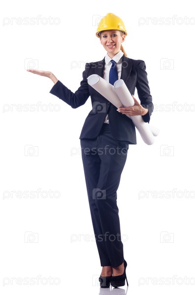 Архитектор с рисунками на белом фоне