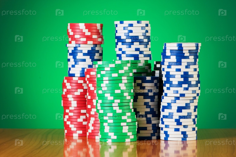Стопки фишек казино на зеленом фоне