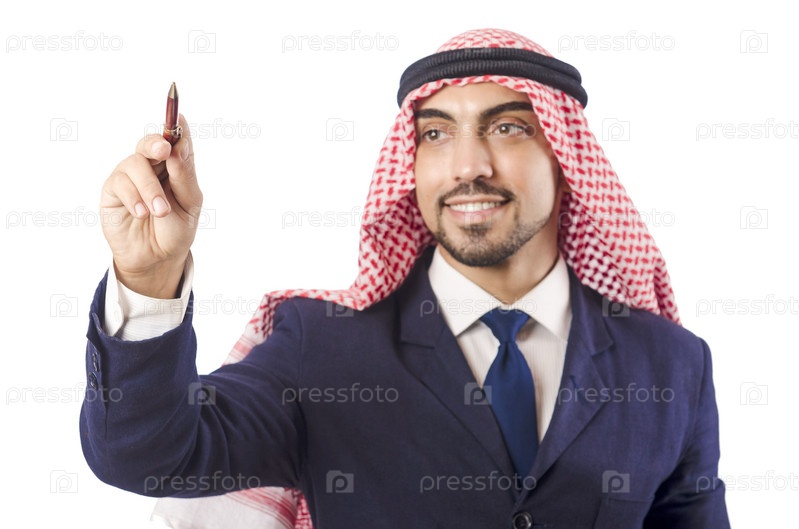 Арабский мужчина нажимает на виртуальные кнопки