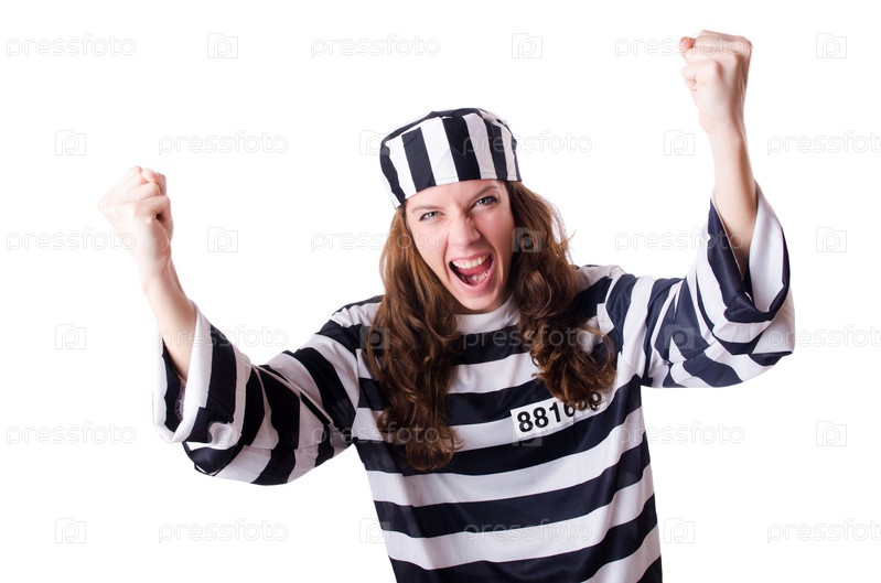 Осужденный преступник в полосатой форме