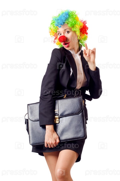 Женщина-клоун в деловом костюме