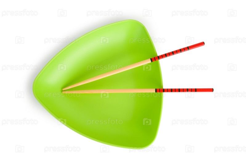 Пустая тарелка и палочки для еды
