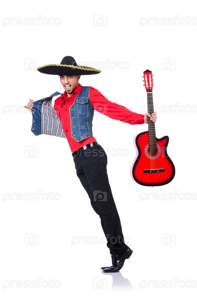 Гитарист, изолированный на белом