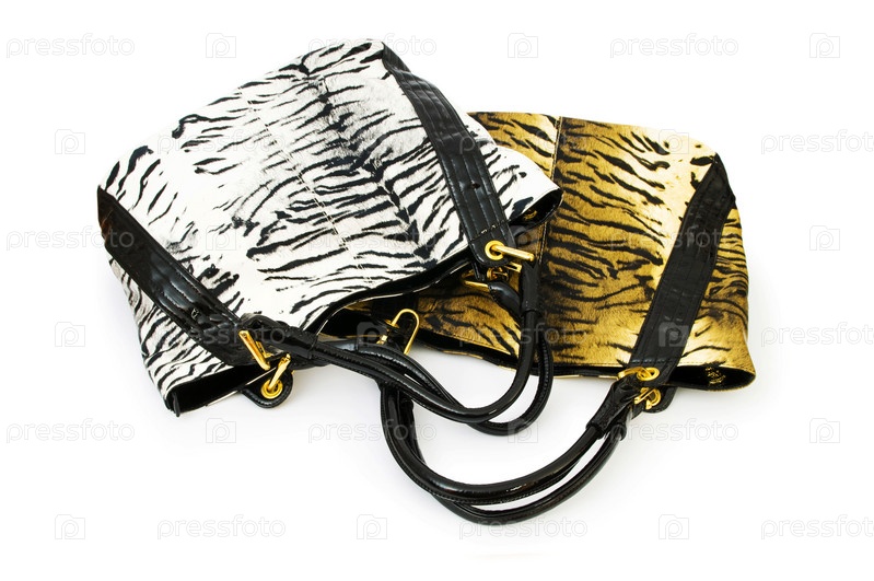 Две женские сумки тигровой расцветки на белом фоне