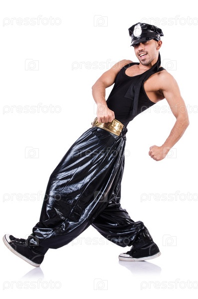 Танцор рэпа в широких штанах на белом