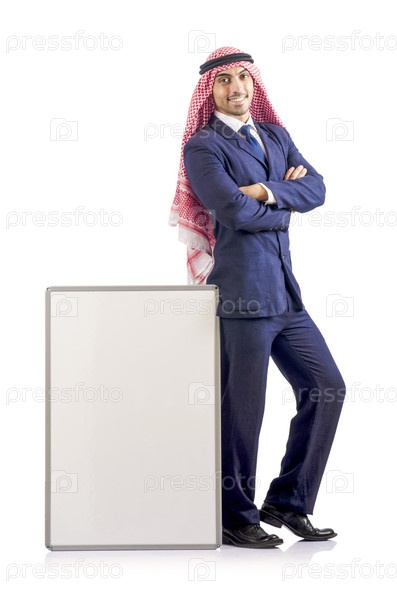 Арабский бизнесмен с шаблоном, изолированный на белом фоне