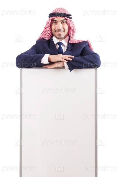 Арабский бизнесмен с шаблоном, изолированный на белом фоне