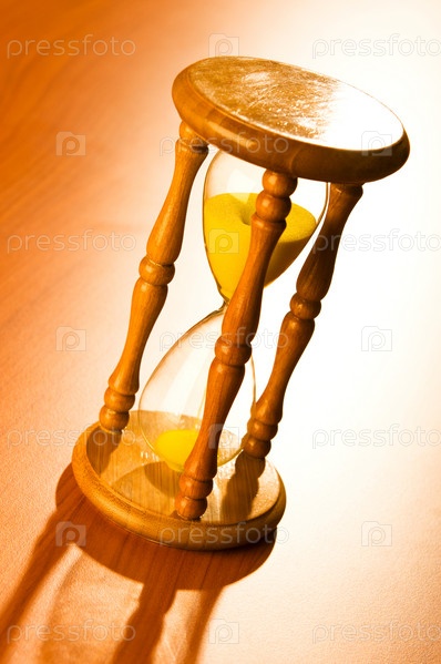 Песочные часы на деревянном столе