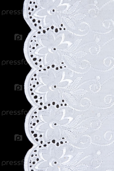 Белое кружево с цветочным узором на черном фоне