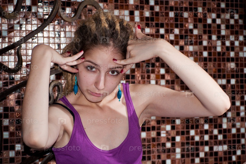 Портрет молодой девушки с дредами на фоне декоративной мозаики