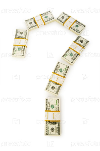 Вопросительный знак сделан из долларов, изолированных на белом