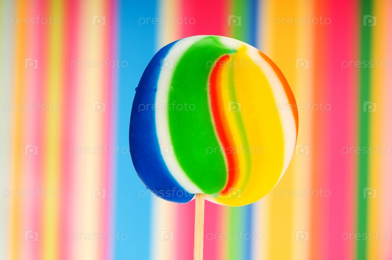 Красивый леденец на полосатом фоне