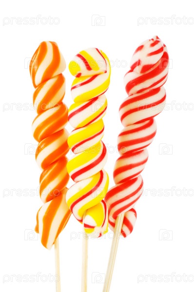 Три леденца на палочках на белом фоне